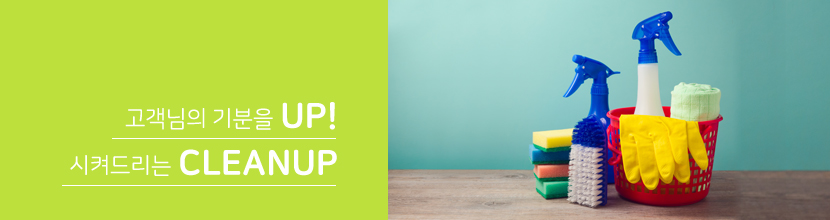 저희 클린업은 청소에 관련된 모든 서비스 사항에 대해 오랜 경험과 전문적인 기술을 지닌 청소 전문 서비스 기업입니다. 풍부한 현장 노하우와 첨단전문장비, 전문기술, 전문 청소팀을 완벽히 갖추고 있으며, 고객님께 만족된 서비스를 실현해 드리기 위해 최선의 노력을 하겠습니다. 클린업은 청소 서비스 후 고객님의 기분을 UP!시켜드리는 청소업체 클린업이 되겠습니다.